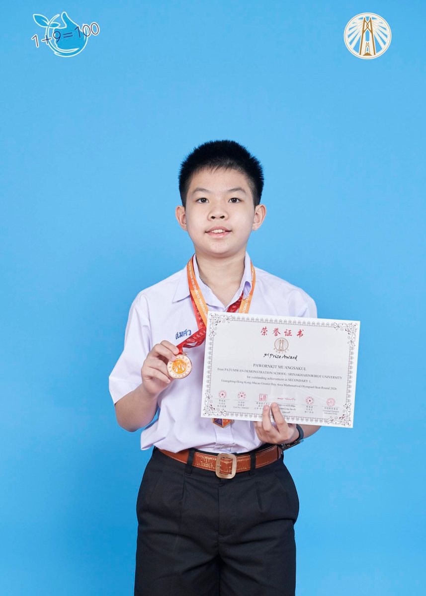 Congratulations to Mr.Pawornkit Muangsakul, M.1/353 for his brilliant success.
