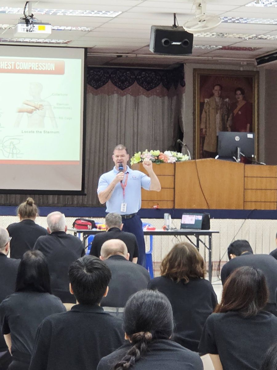 We were honored to welcome expert instructors from First Aid Training Bangkok, who provided us with essential knowledge and hands-on experience in basic first aid and Cardiopulmonary Resuscitation (CPR) techniques. This session aimed to equip teachers and staffs with the confidence and skills necessary to respond effectively to emergencies.